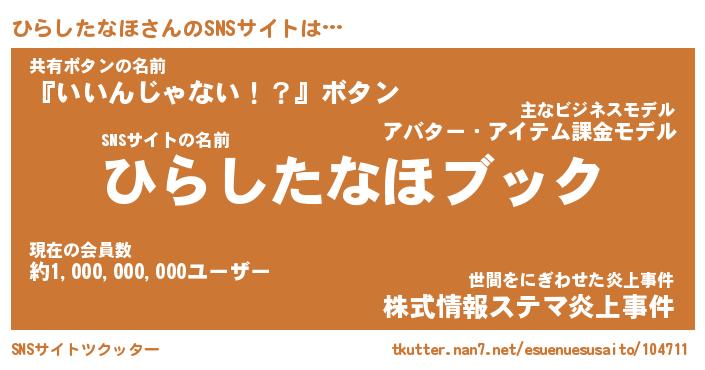 | ツイッター | ひらしたなほさんのツイッターID『namakemono_idle』 |