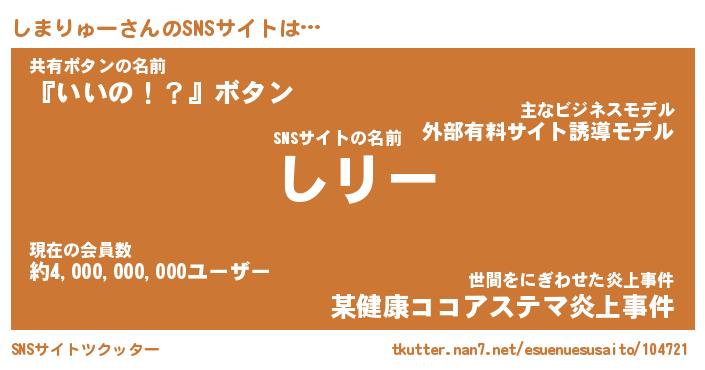 | 男性向けラノベタイトル風あだ名 | 『しまりゅーの憂鬱』 |