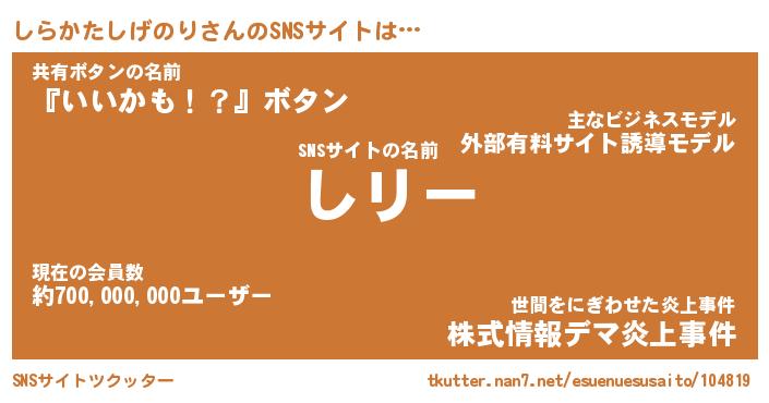 | 肩書あだ名 | 『しらかたしげのり社長令嬢』 |