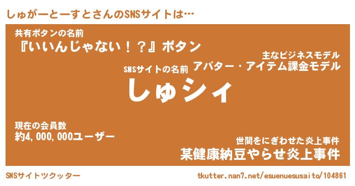 | ヘコむあだ名 | 『しゅにゅー』『豆乳』『しゅ太郎』 |