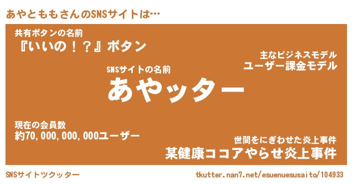 | 伝説のあだ名 | 『封印されしスナイパーあやともも』 |