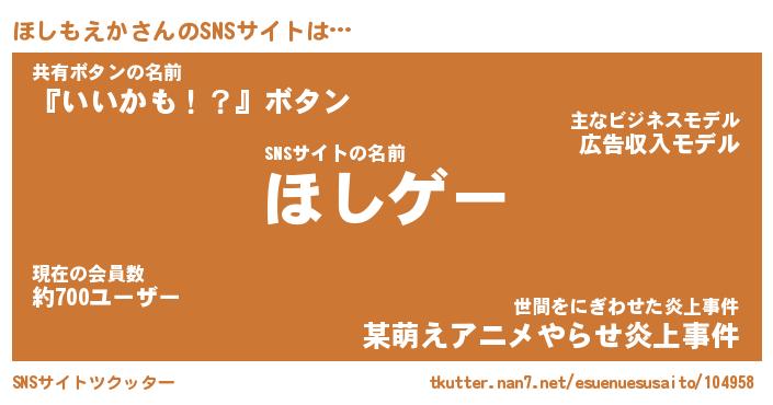 | ファンタジー風あだ名 | 『ホシフェル』『エターナルホシモエカー』 |