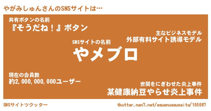 | 胡散臭い通販商品みたいなあだ名 | 『モテモテ間違いなし水晶球…その名も「やがみしゅん」』 |
