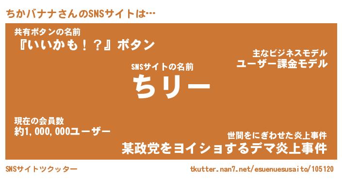 | 肩書あだ名 | 『ちかバナナ店長』『ちかバナナ国家主席』 |