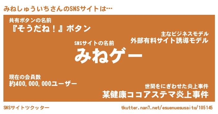 肩書あだ名 | 『みねしゅういち御曹司』 |