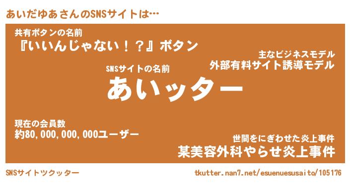 | 胡散臭い通販商品みたいなあだ名 | 『億万長者になれるブレスレット…その名も「あいだゆあ」』 |