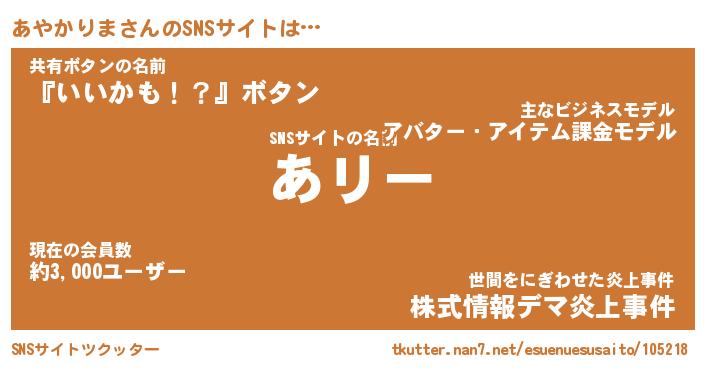 | 胡散臭い通販商品みたいなあだ名 | 『モテモテ間違いなし霊験あらたかなお札…その名も「あやかりま」』 |
