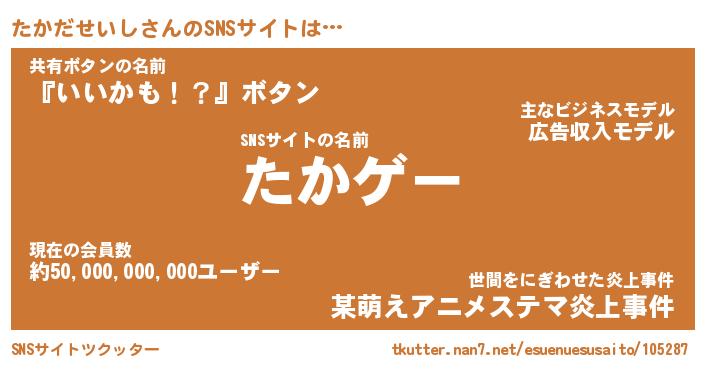 | 男性向けラノベタイトル風あだ名 | 『たかだせいしの憂鬱』 |