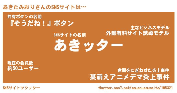 | 男性向けラノベタイトル風あだ名 | 『アキタミオリアートオンライン』 |