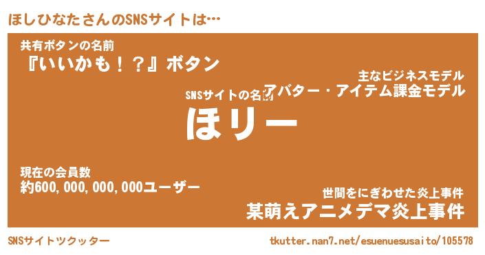 | ファンタジー風あだ名 | 『ホシフェル』『エターナルホシヒナター』 |