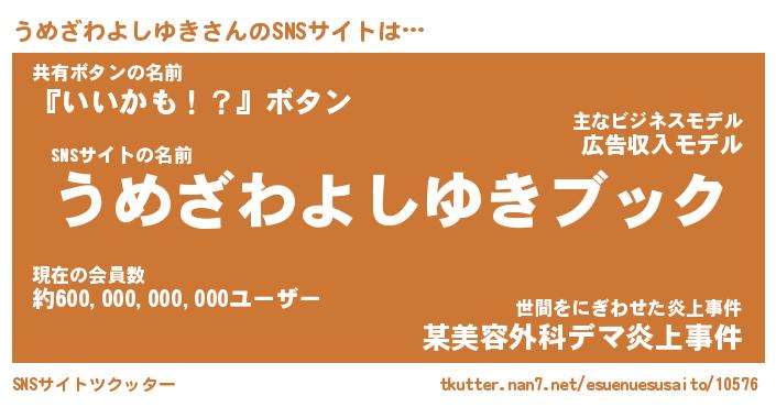 | 肩書あだ名 | 『うめざわよしゆき社長』 |
