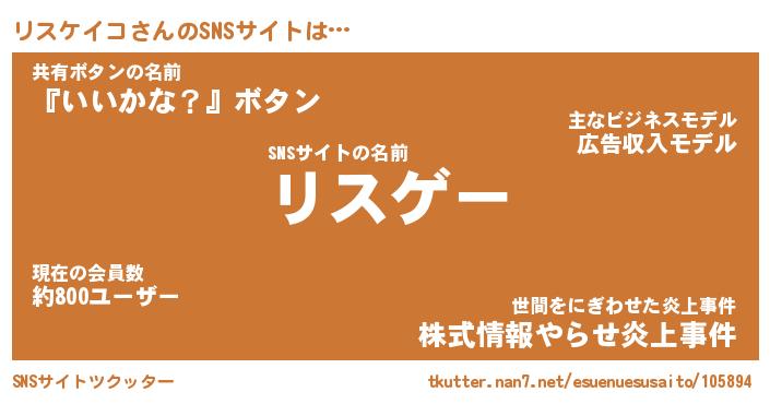 | ファンタジー風あだ名 | 『リスフェル』『エターナルリスケイコー』 |