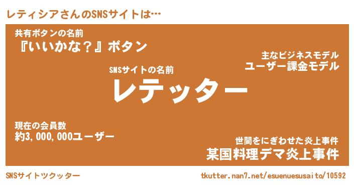 | ファンタジー風あだ名 | 『レテフェル』『エターナルレティシアー』 |