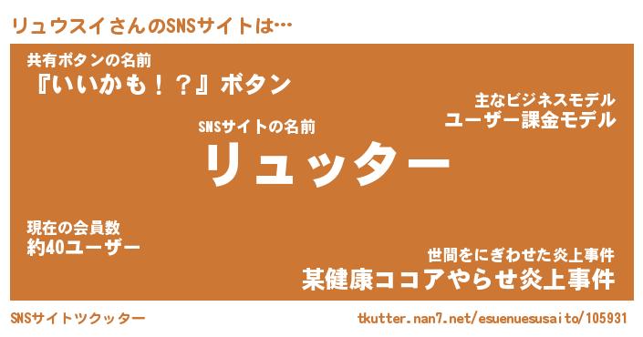 | ファンタジー風あだ名 | 『リュフェル』『エターナルリュウスイー』 |
