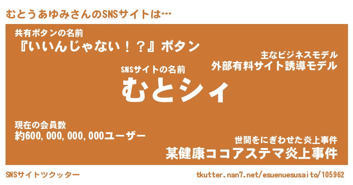 | ヘコむあだ名 | 『むとっふぃ~』『豆乳』『むと太郎』 |