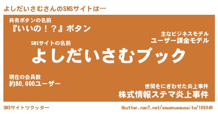| 肩書あだ名 | 『よしだいさむCEO』『よしだいさむ団長』 |