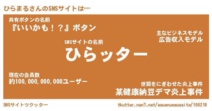| ヘコむあだ名 | 『ひらにー』『なまこ酢』『ひら太郎』 |