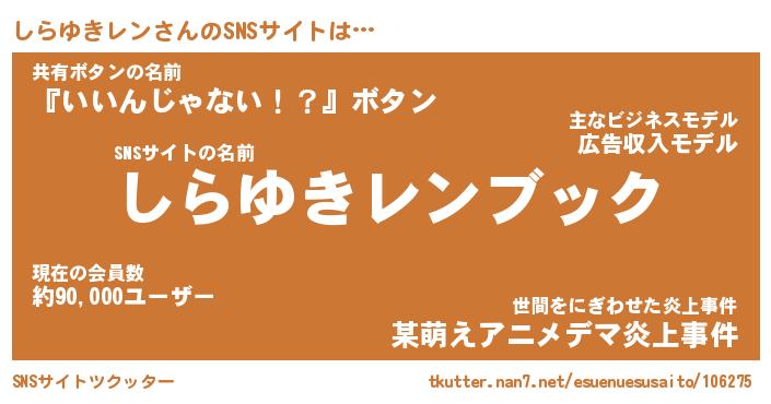 | 肩書あだ名 | 『しらゆきレン社長』『しらゆきレン班長』 |
