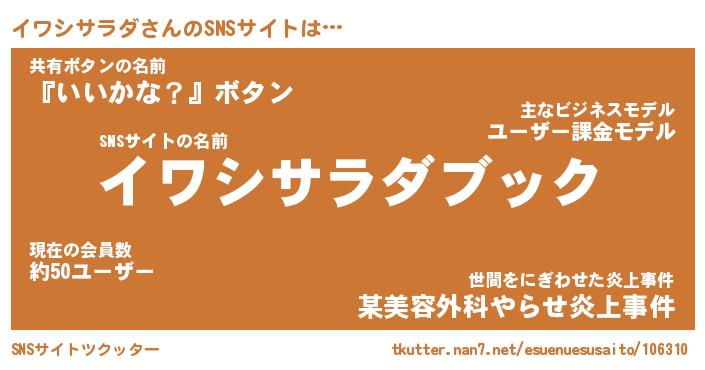 | 胡散臭い通販商品みたいなあだ名 | 『億万長者になれるブレスレット…その名も「イワシサラダ」』 |