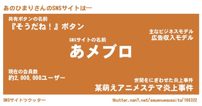 | ヘコむあだ名 | 『あのにー』『なまこ酢』『あのを』 |