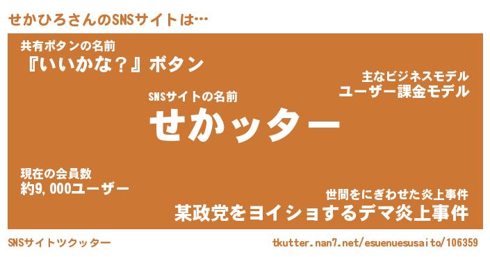 | 肩書あだ名 | 『せかひろCEO』『せかひろ国家主席』 |