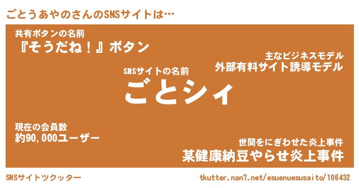 | 肩書あだ名 | 『ごとうあやの御曹司』 |