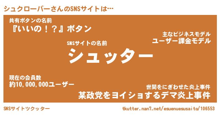 | ツイッター | シュクローバーさんのツイッターID『fukuyoka_idle』 |