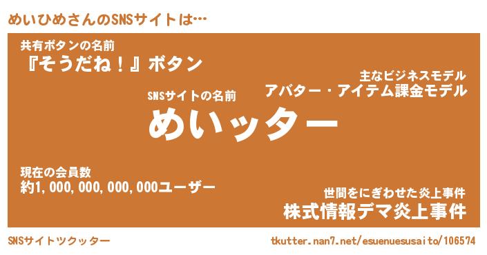 | 胡散臭い通販商品みたいなあだ名 | 『億万長者になれる水晶球…その名も「めいひめ」』 |