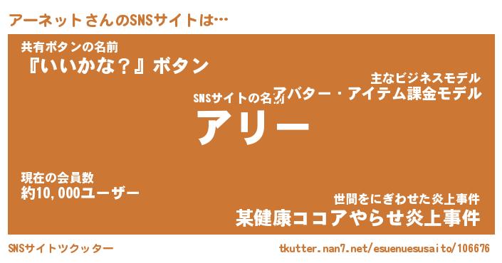 | ファンタジー風あだ名 | 『アーフェル』『エターナルアーネットー』 |