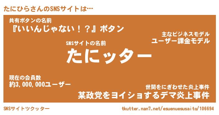 | 胡散臭い通販商品みたいなあだ名 | 『億万長者になれるブレスレット…その名も「たにひら」』 |