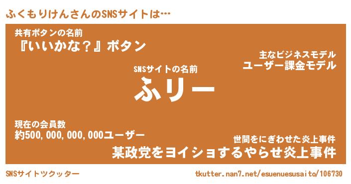 | 肩書あだ名 | 『ふくもりけん社長』『ふくもりけん団長』 |