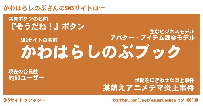 | ツイッター | かわはらしのぶさんのツイッターID『namakemono_star』 |