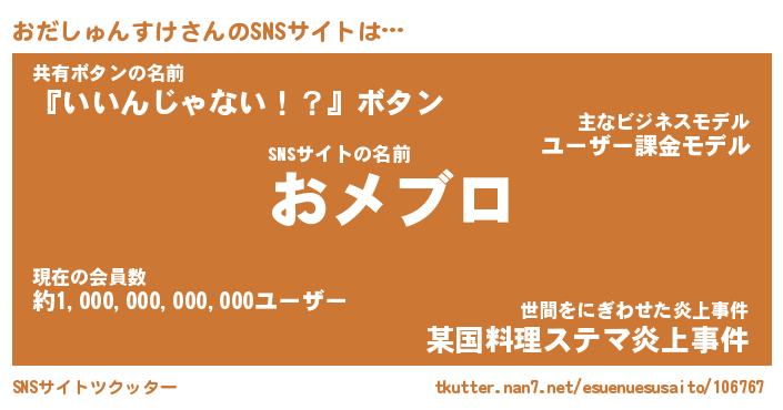 | 欧米人風あだ名 | 『マイケルおだしゅんすけ』 |