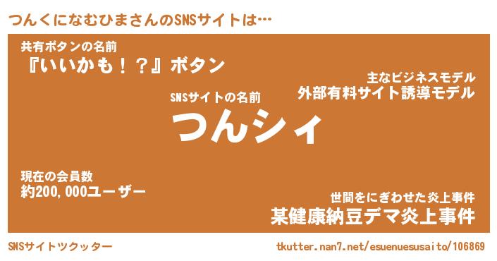 | 男性向けラノベタイトル風あだ名 | 『つんくになむひまの憂鬱』 |