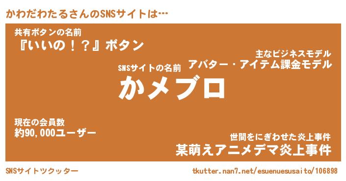 | ツイッター | かわだわたるさんのツイッターID『katatsumuri_idle』 |
