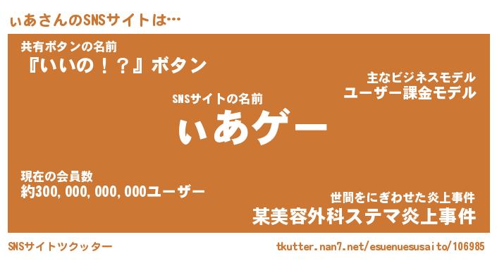 | 男性向けラノベタイトル風あだ名 | 『ぃあの憂鬱』 |
