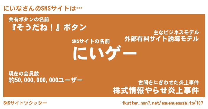 | ファンタジー風あだ名 | 『ニイフェル』『エターナルニイナー』 |