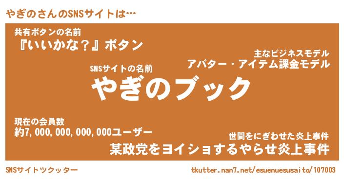 | 胡散臭い通販商品みたいなあだ名 | 『億万長者になれるブレスレット…その名も「やぎの」』 |