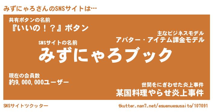 | 肩書あだ名 | 『みずにゃろ社長』『みずにゃろ総理大臣』 |