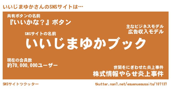 | 胡散臭い通販商品みたいなあだ名 | 『億万長者になれるブレスレット…その名も「いいじまゆか」』 |