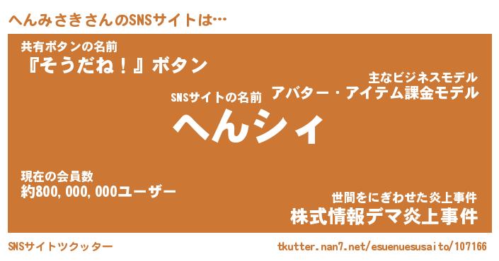 | 胡散臭い通販商品みたいなあだ名 | 『必ず成功するブレスレット…その名も「へんみさき」』 |