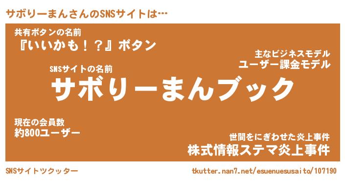 | 欧米人風あだ名 | 『マイケルサボりーまん』 |
