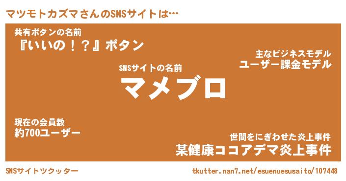 | 肩書あだ名 | 『マツモトカズマ社長』 |