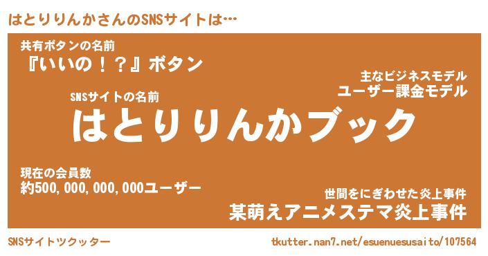 | 胡散臭い通販商品みたいなあだ名 | 『億万長者になれるブレスレット…その名も「はとりりんか」』 |