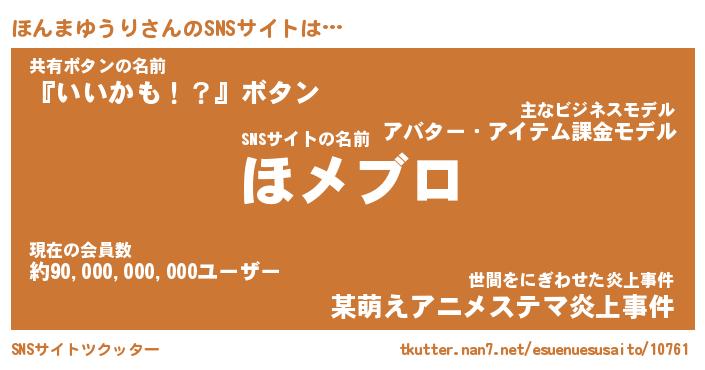 | 肩書あだ名 | 『ほんまゆうり社長』『ほんまゆうり班長』 |