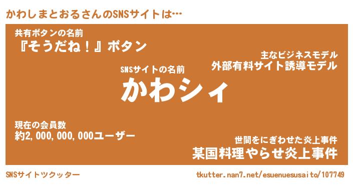 | 肩書あだ名 | 『かわしまとおる御曹司』 |