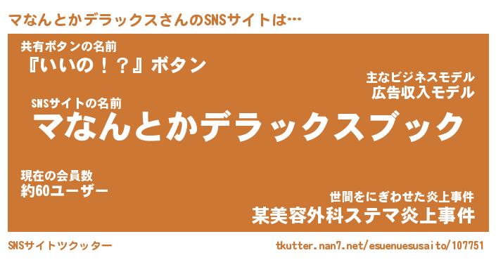 | 女子向けラノベタイトル風あだ名 | 『誰かこのマなんとかデラックスを説明してください! ~契約から始まるウェディング~』 |