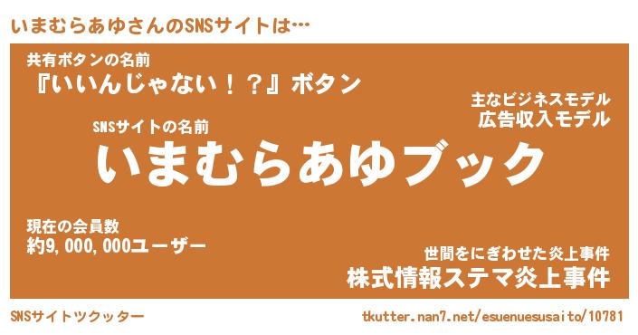 | 肩書あだ名 | 『いまむらあゆ御曹司』 |