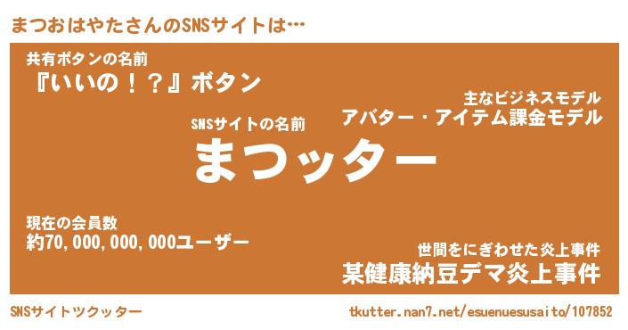 | 胡散臭い通販商品みたいなあだ名 | 『億万長者になれる水晶球…その名も「まつおはやた」』 |