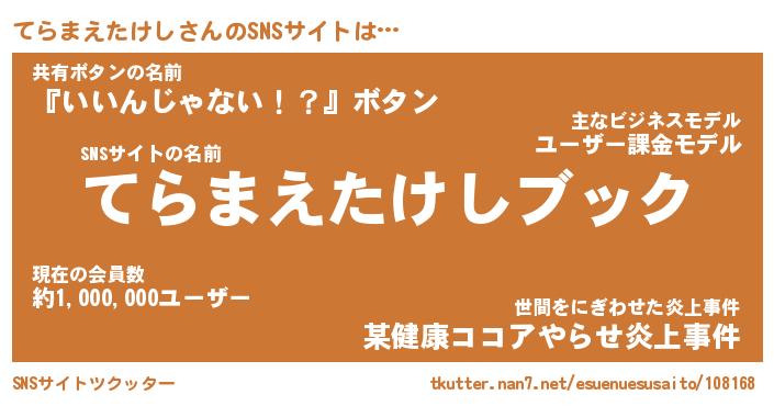 | 胡散臭い通販商品みたいなあだ名 | 『億万長者になれるブレスレット…その名も「てらまえたけし」』 |